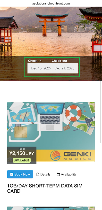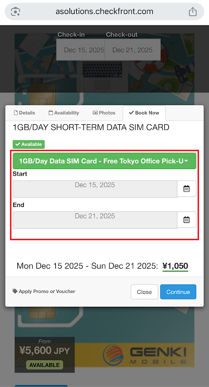 You will then be directed to the Pocket Wi-Fi product page. Here, you can select your check-in and check-out dates, which usually match your arrival and departure dates in Japan. Scroll down to view the available Pocket Wi-Fi plans. You can choose between 1GB per day service with short-term and long-term rental options.